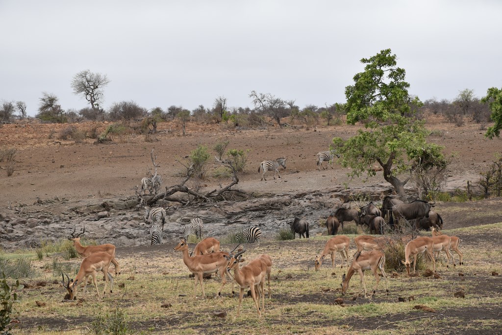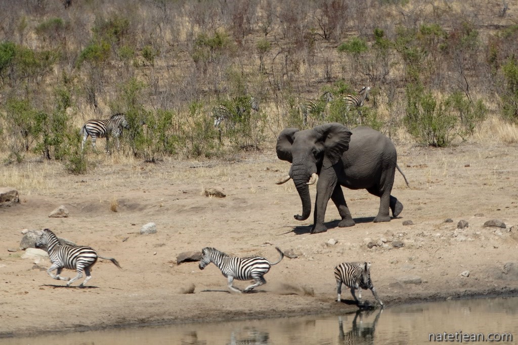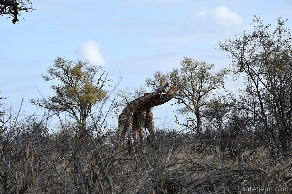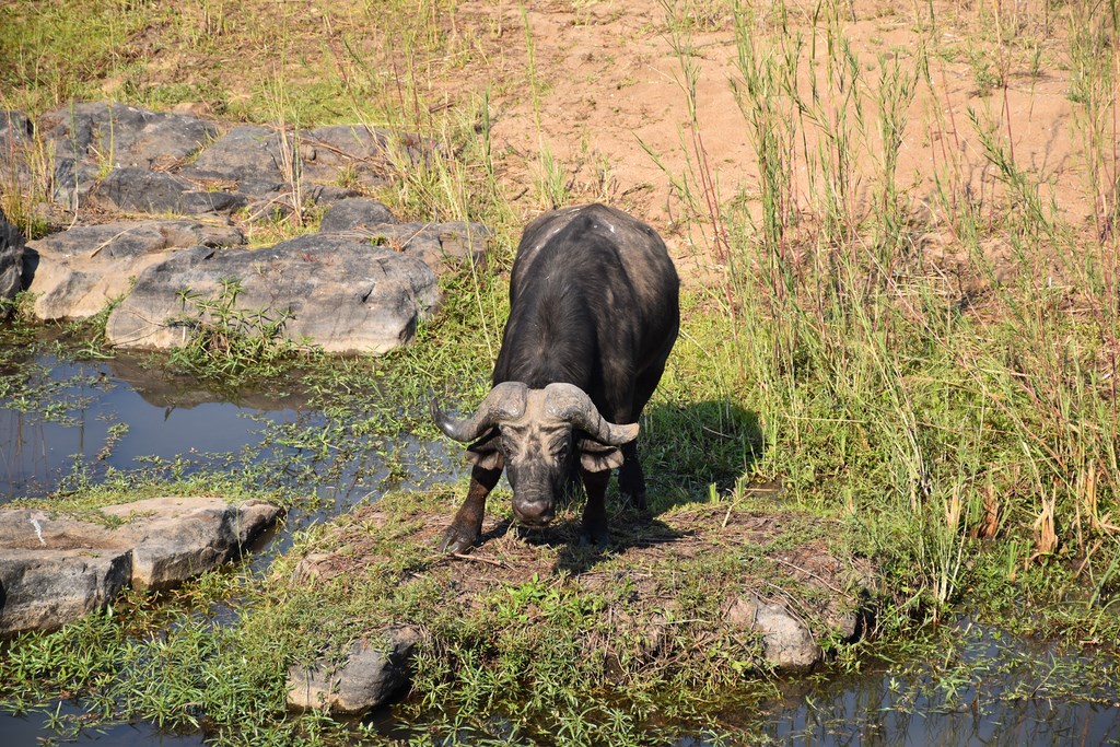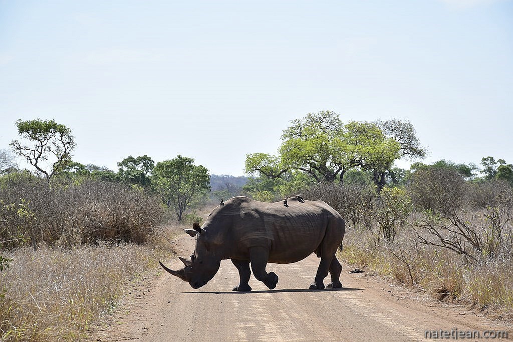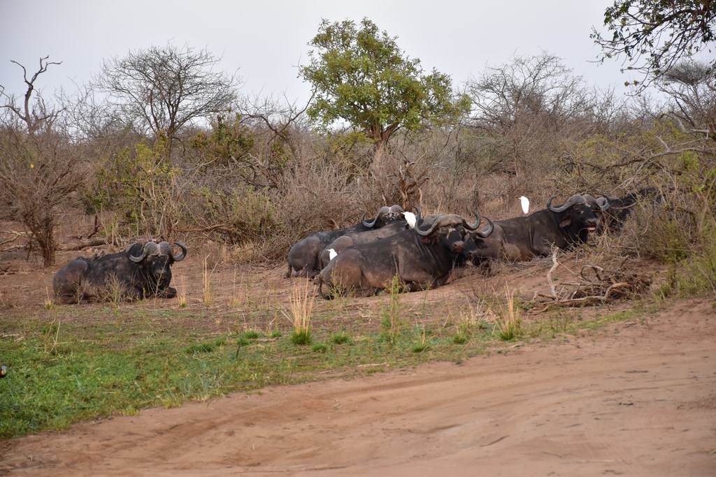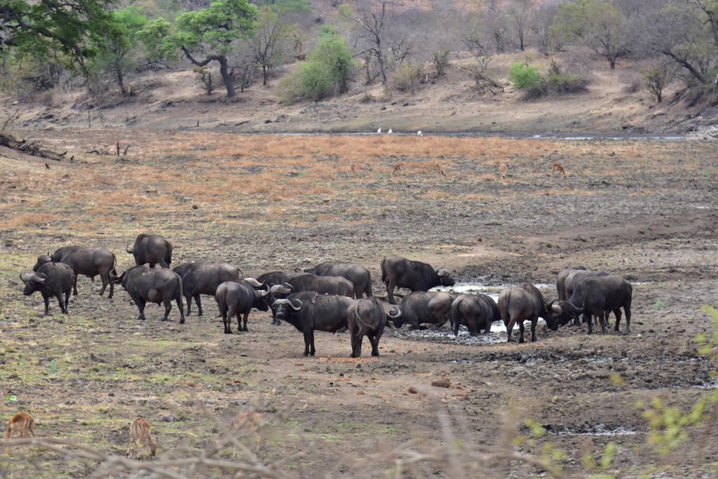 Nous avons été très gâtés par Kruger où nous avons vu la plupart des animaux emblématiques du parc dont les "Big Fives" (les 5 grands ou les 5 plus dangereux), le lion, l'éléphant, le rhinocéros noir et blanc, le léopard et le buffle. Nous y avons passé beaucoup de temps mais cela en valait la peine. Chaque jour, les situations dans lesquelles nous apercevions les animaux étaient différentes. Les animaux peuvent dormir, manger, se baigner, être en chasse ou être en rut. Ils sont seuls ou en groupe. Un jour, 2 ou 3 éléphants traversent devant votre véhicule tandis qu'un autre jour, ce sont des centaines qui franchissent la rivière Sabie. Chaque jour est différent et si, un jour, on a l'impression de ne pas voir grand-chose, on se réjouit le lendemain d'en voir autant.