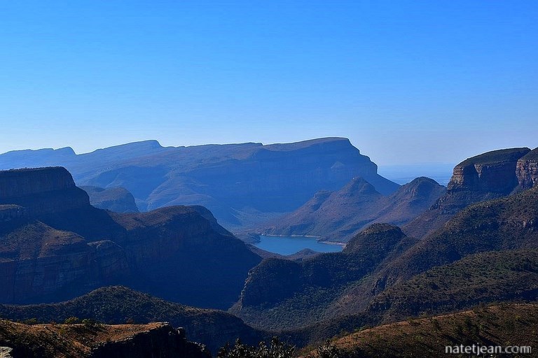 Nous campons le soir à Graskop, endroit agréable et touristique avec une très belle vue sur le Drakensberg Escarpment. A partir de Graskop débute ensuite une belle route panoramique parsemée de points de vue plus ou moins intéressants. Nous retiendrons les Berlin Falls ainsi que la vue sur la rivière Blyde et son barrage depuis The Three Rondavels tandis que Pinnacle, Wonder View, God's Window et Bourke's Luck Potholes ne valent pas le détour. Ce qui était amusant tout de même sur ces sites c'est qu'il y avait un monde fou, des citadins en week-end, et que l'ambiance y était vraiment festive. Finalement, on a d'avantage observé les Sud-Africains en balade que les paysages.