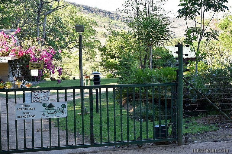 Dans la matinée du lendemain, nous retournons à Nelspruit réceptionner notre nouvel appareil photos puis nous partons en direction du Drakensberg Escarpment et du Blyde River Canyon, le 3ème plus grand canyon du monde. Après avoir emprunté une belle route de montagne, nous faisons halte à Sabie pour la nuit. C'est encore une fois une nuit passée en camping et c'est un crève-cœur car partout, nous aurions pu bivouaquer dans de magnifiques endroits. Sauf qu'en Afrique du Sud, on nous a mis en garde, pour notre sécurité, pas de camping sauvage. Ici, on devient complètement paranos. Les campings sont entourés de 3 rangés de barbelés électrifiés et lorsque nous garons notre camping-car quelque part, nous le faisons garder... Tout ceci nous met un peu sous tension. Est-ce exagéré ? L'avenir nous le dira. En attendant, nous ne ressentons aucun mauvais sentiment de la part de la population, bien au contraire, Blancs et Noirs sont tout autant accueillants et amicaux.