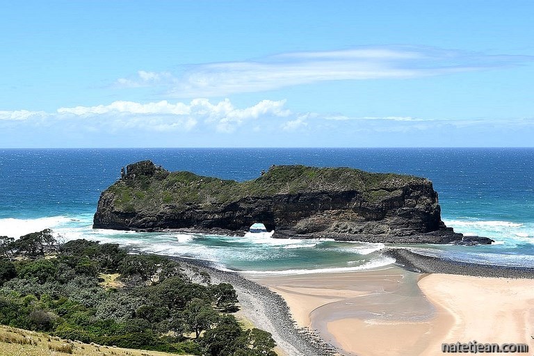 Le long de la côte, 9 km plus au sud de Coffee Bay, une balade conduit au « Hole in the Wall », un rocher percé. C’est une superbe promenade mais pas si facile qu’elle en a l’air. Le bord de mer est bordé de collines dont le nombre et le dénivelé ne sont pas négligeables. Heureusement, le chemin est propre et bien marqué. Le seul bémol de cette promenade concerne encore une fois la sécurité. Les habitants n’hésitent pas à nous mettre en garde contre d'éventuels voleurs qui pourraient nous braquer. Info ou intox pour nous obliger à prendre un guide ? Nous penchons pour l’intox. En Afrique du Sud, la sécurité est un vrai business et beaucoup, à tout niveau, en profite. On voudrait ne pas succomber à cette peur mais ce n’est pas toujours facile de se raisonner après avoir reçu des avertissements. En tout cas, cette balade se déroule sans aucun souci et sans guide.