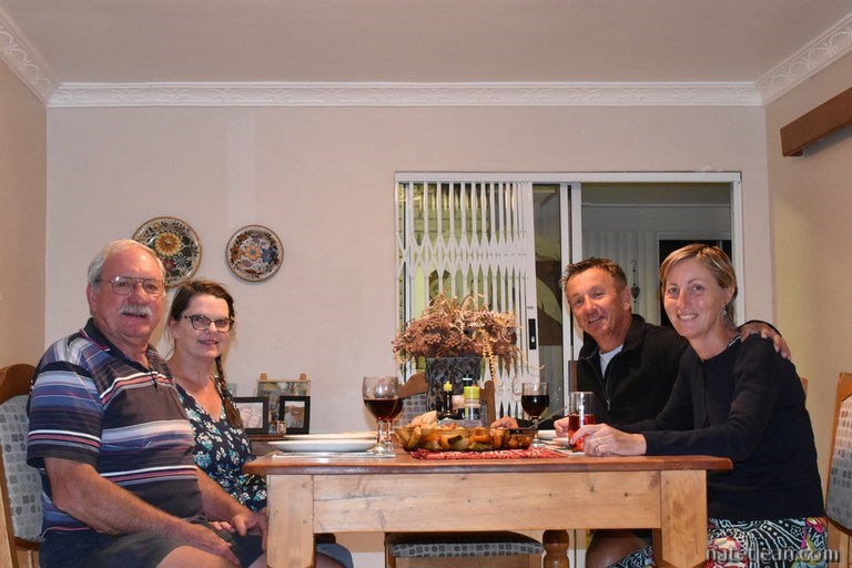 Nous ne faisons qu'un stop à Betty's Bay ou plus précisément au Cap de Stony Point pour apercevoir quelques manchots au bord de l'océan puis nous passons l'après-midi à Kleinmond, joli village de maisons de vacances entouré par les montagnes au nord et la mer au sud. Alors que nous avons décidé de dormir sur un point de vue sur la mer, un couple nous aborde afin de discuter avec nous. Lorsque nous re-croisons Lilo et Koela un peu plus tard dans le village, ils nous invitent à dîner et dormir chez eux. Nous avons l'habitude de toujours accepter les invitations d'abord parce que nous pensons que ça fait plaisir à ceux qui nous les proposent mais surtout parce que, pour nous, ce sont toujours des rencontres intéressantes. Le but du voyage n'est pas seulement de voir des paysages ou d'observer les animaux mais bien de faire connaissance avec les gens du pays. Passer une soirée ensemble est idéal pour en apprendre plus sur le pays. C'est aussi un moment très agréable pour nous car, en voyage, nous sommes souvent seuls; la compagnie nous distrait de cette solitude.