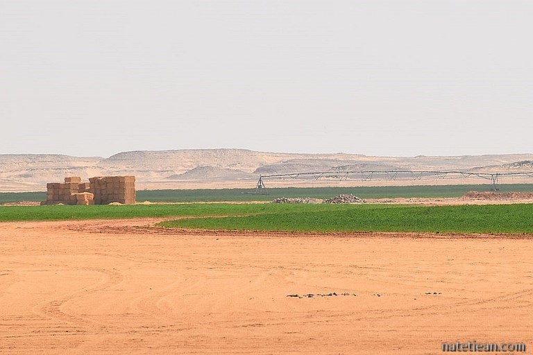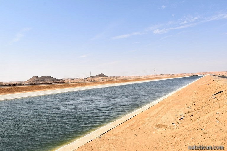 Un petit bivouac dans le désert n'est pas pour nous déplaire et les 150 km que nous parcourons dans ce même désert le lendemain matin pour rejoindre Abou Simbel non plus. Dans ce paysage de sable et de cailloux, aux environs de Toshka, nous découvrons, avec surprise, des parcelles cultivées et irriguées grâce à des canaux provenant du lac Nasser. Il s'agit d'un projet inauguré en 1997 pour créer une vallée artificielle ; un projet tellement couteux en eau qu'il semble peu à peu à l'abandon.