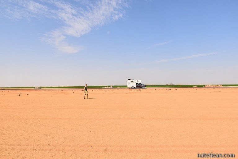 Nous faisons une pause à Toshka afin que Jean vide dans le réservoir les 2 jerricans de diesel qu'il avait remplis au Soudan pour assurer la traversée du désert. Ils ne sont désormais plus utiles car, à partir de maintenant, il devrait y avoir partout des stations-services. Nous faisons ensuite une pause déjeuner dans un petit resto avant de reprendre la route en direction d'Abou Simbel. Depuis la frontière, la route est en parfait état et il n'y a aucune circulation.