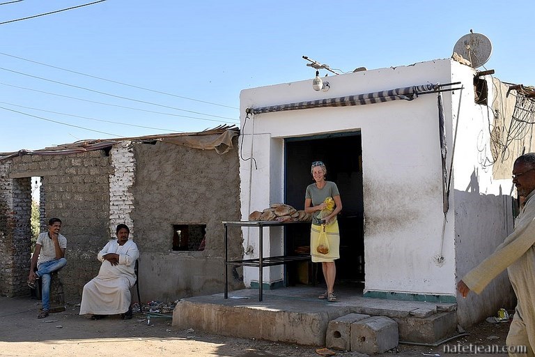 En plus, à Assouan, on n'a pas vraiment de bons plans pour passer la nuit alors on tourne dans la ville à la recherche d'un endroit. Finalement, sur la rive ouest du Nil, on trouve un emplacement à côté d'un terrain de foot et d'un petit hôtel, dans le centre d'un village, Gharb Seheil. On se renseigne auprès des voisins pour savoir si on peut dormir sur place et tous nous assurent que nous serons tranquilles. Enfin tranquilles... que nous serons en sécurité parce que la tranquillité, elle n'arrive qu'à partir de 2 ou 3 heures du matin. Le reste du temps, c'est très bruyant.