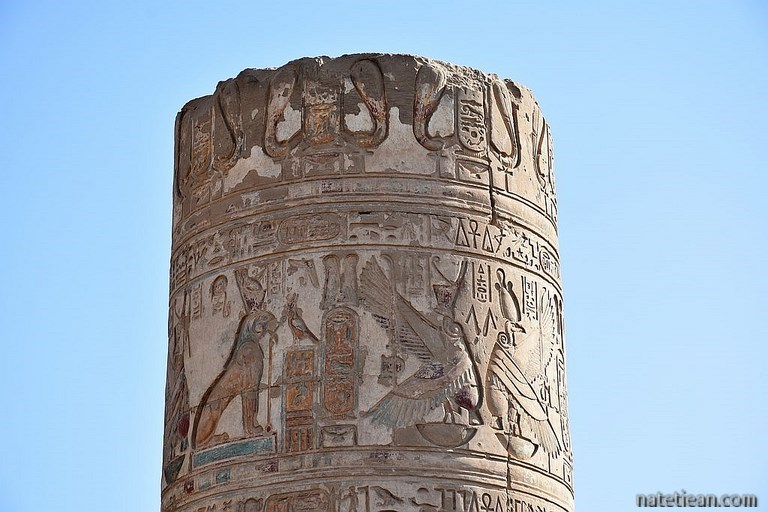Après la visite de la matinée, nous continuons notre route vers Edfou. Nous y visitons le temple dédié au dieu Horus qui date à peu près de la même période que ceux de Kom Ombo. Le temple est situé en plein cœur de la ville ce qui, bien sûr, est un peu moins grandiose comme emplacement que celui des précédents temples mais qui n'enlève rien à la beauté du monument.