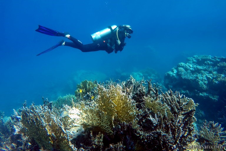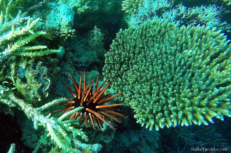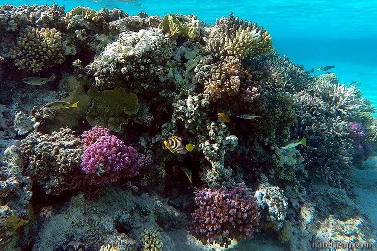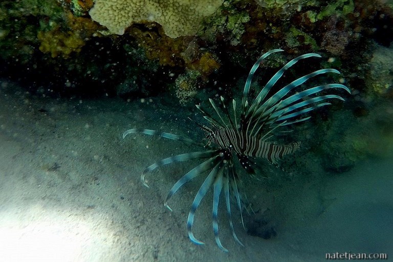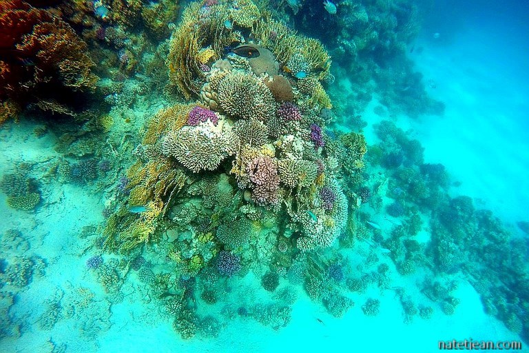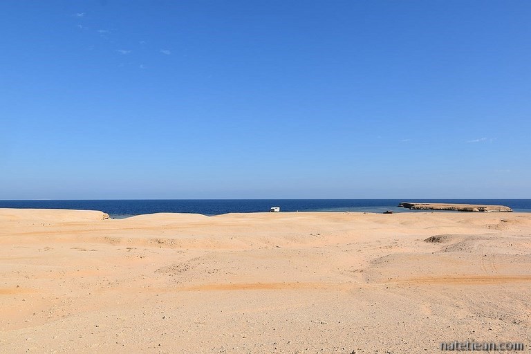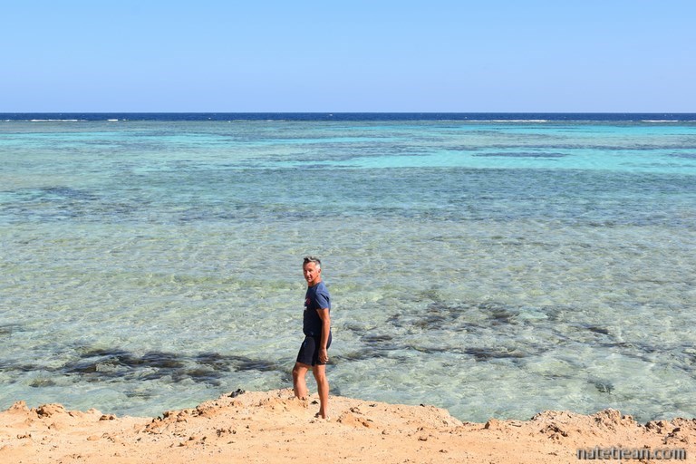 Après une bonne centaine de kilomètres entre désert et littoral, nous faisons un arrêt sur une plage au nord d'El Quseir. La barrière de corail est toute proche avec un tombant d'au moins 20 mètres de profondeur. Le corail est incroyable. On y aperçoit une myriade de poissons colorés.