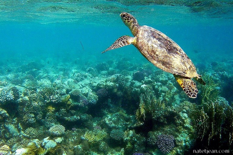 Les 2 soirs suivants, nous retrouvons le même endroit après avoir passé la journée sur la plage de Marsa Asaliy où l'accès à la barrière de corail est très facile. Vers El Quseir, je m'étais un peu rayée en sortant car le corail affleurait la surface de l'eau alors que là, il n'y a aucun danger. C'est aussi un bon endroit pour la plongée bouteille avec un tombant de 30 mètres, de beaux fonds et un accès facile. Nous comptons jusqu'à 50 plongeurs dans l'eau avec nous. Sur ce spot, nous avons la change d'y voir une tortue et des raies. Que demander de plus ? Peut-être un dugong que nous espérions voir à Marsa Egla, la baie voisine car il y a un herbier et nous avons entendu dire qu'il y en avait dans le coin mais, malheureusement, nous n'en verrons pas.