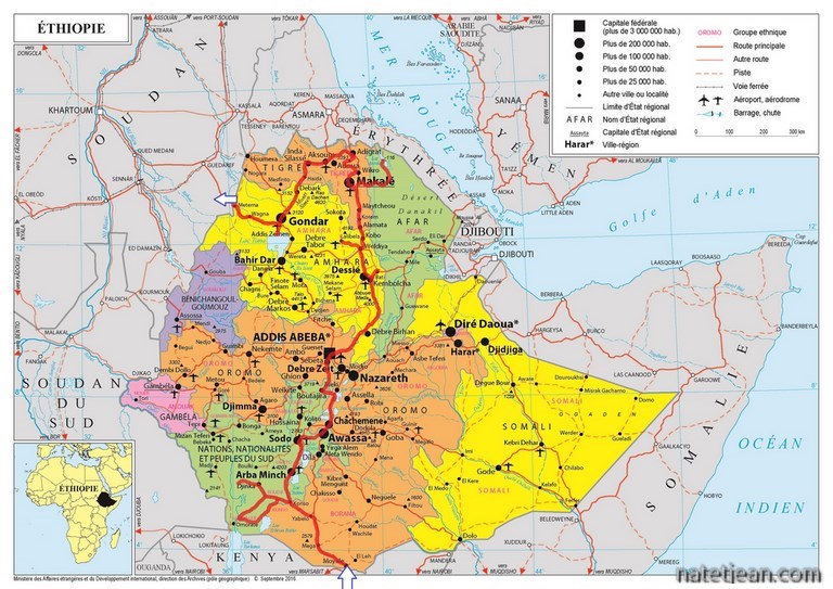 L'Ethiopie est un pays extraordinaire, incomparable aux autres pays traversés durant ce voyage en Afrique. Plus de 100 millions de personnes, 80 ethnies qui en font un pays à la fois multiple et unique, 2 religions très marquées, le Christianisme Orthodoxe et l'Islam, des paysages aussi beaux et divers que les Hauts Plateaux culminants à plus de 4000 mètres ou le Désert du Danakil situé au-dessous du niveau de la mer, des traces de civilisations vieilles de plus de 1000 ans, des monuments cachés dans des endroits improbables, des villes qui poussent comme des champignons avec des usines et des immeubles tandis que dans les campagnes, les paysans vivent encore dans des baraques en bois et en torchis et labourent leurs champs avec des bœufs, une nourriture variée et délicieuse et enfin des habitants pour la plupart charmants qui se mettent en 4 pour vous satisfaire en cas de besoin. Cependant, visiter l'Ethiopie en camping-car n'est pas toujours facile. Voyager en camping-car signifie que l'on va où l'on veut, que l'on s'arrête où l'on veut pour bivouaquer ou pour rencontrer la population or, en Ethiopie, celle-ci est très demandeuse, pas seulement curieuse ou envahissante mais vraiment exigeante et malheureusement, nous ne pouvons répondre à ses attentes et devons même la fuir donc peu de bivouacs sauvages et peu de communication et c'est là le seul bémol de notre séjour dans ce pays.