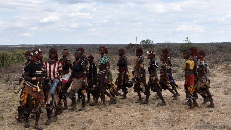 Cérémonie de l'oukouli (Bull Jumping) dans un village hamer - région de Turmi