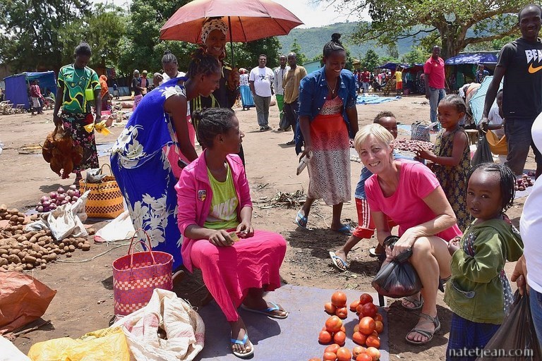 Après 3 jours passés à Jinka, nous reprenons la route en sens inverse et nous arrêtons à Key Afer. Autre village et autres ethnies, cette fois, ce sont les Bana et Tsmay qui peuplent la région et que l'on retrouve au marché du jeudi. En général, les marchés battent leur plein après midi donc, quand on a fini la visite, il est presque trop tard pour prendre la route. C'est pourquoi nous restons à Key Afer jusqu'au lendemain dans le jardin d'un petit lodge, le Zarzi Hotel. Dans le village, nous achetons des samossas de lentilles très frais et très bons qui font un bon déjeuner. La nourriture éthiopienne, très variée, est pleine de bonnes surprises.