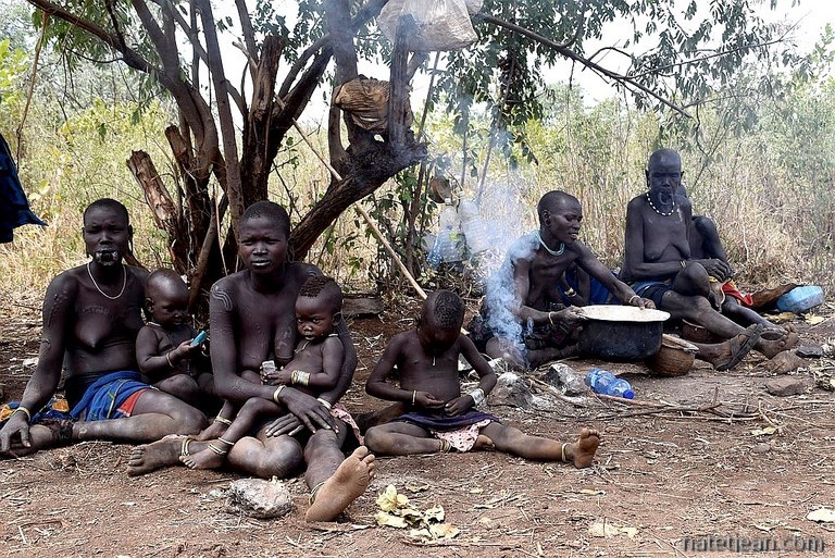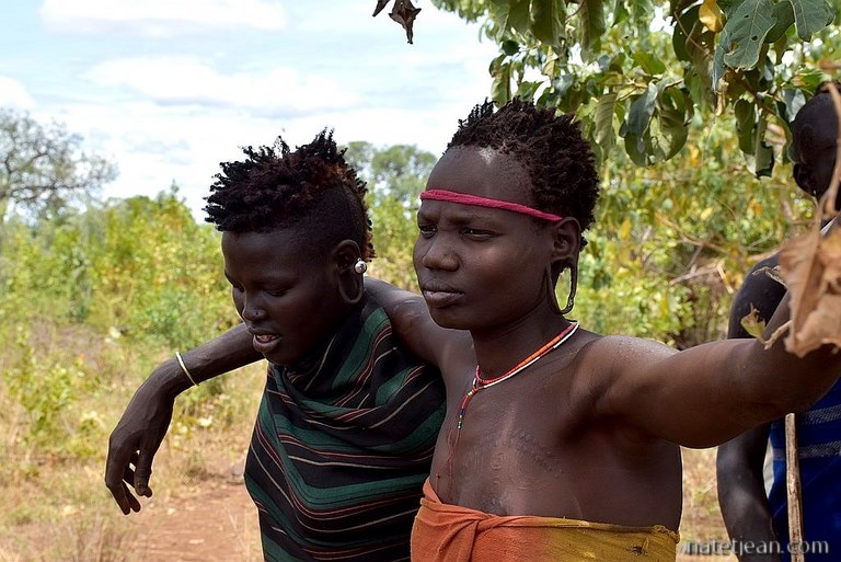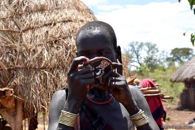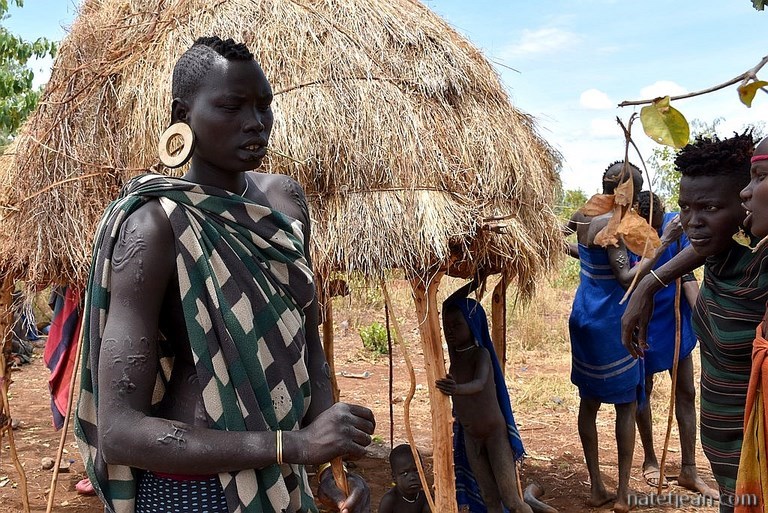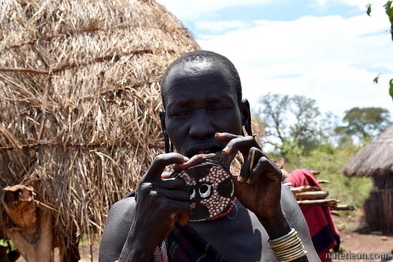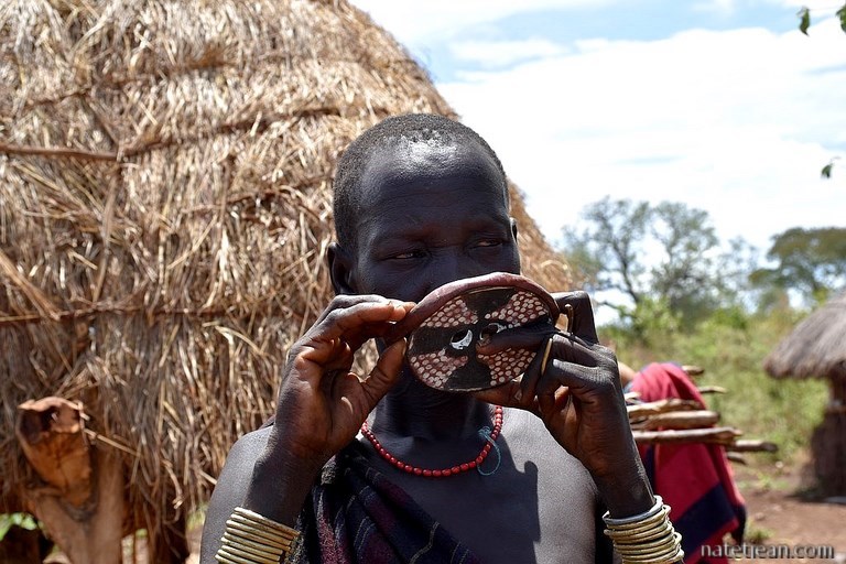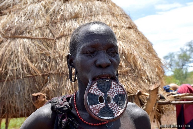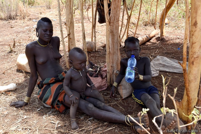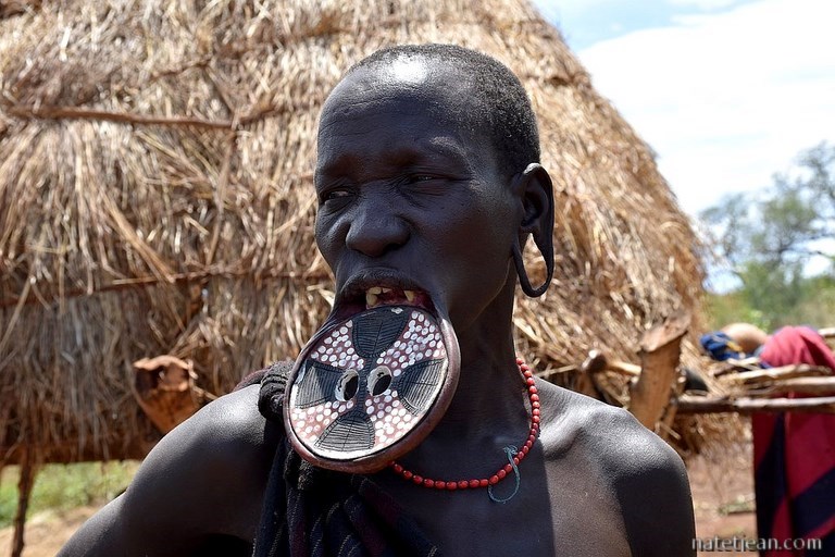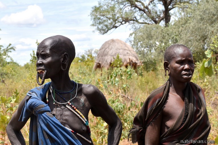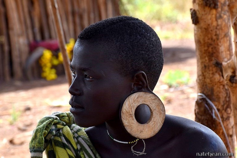 Sur place, nous réservons une visite dans un village mursi, une ethnie vivant à l'ouest de Jinka dans la zone recouvrant les parcs nationaux Mago et Omo. Les Mursi sont, comme les Hamer, un peuple très particulier mais leur mode de vie et leur apparence sont différents. Chez les Mursi, par exemple, les femmes portent des labrets, de petits plateaux de terre, insérés dans leurs lobes et leur lèvre.