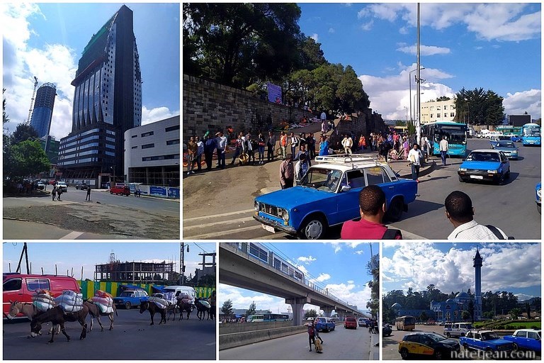 La frontière franchie, on se met en quête d'un ATM pour retirer des birrs, la monnaie locale, et d'une agence Ethio Telecom pour acheter une carte sim. Ici, tout semble un peu plus compliqué que dans les autres pays. Avant de pouvoir retirer de l'argent, je parcours la rue principale de long en large (chaque passant que j'interroge m'envoyant d'une banque à l'autre) avant de trouver enfin un distributeur qui fonctionne. Pour la carte sim, on reporte l'achat car il pleut et je n'ai plus envie de patauger dans la boue. Autres petites complications ou plutôt différences avec les autres pays, l'Ethiopie dispose d'un alphabet spécifique, l'amharique, qui ne ressemble à rien de ce que l'on connaît, les Ethiopiens comptent les années avec un décalage de 7 ans par rapport à notre calendrier et les heures à partir du lever du soleil. Nos repères changent... sauf pour les routes où l'on conduit désormais à droite.