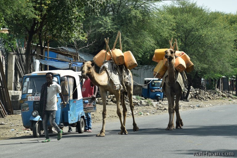 En route, le lendemain, on traverse Sanbete sans s'arrêter au marché. Il faut dire que l'animation est partout sur la route, dans les villages traversés et, aujourd'hui, le marché nous semble de trop. On verra celui de Bati demain. En attendant, on dort dans la ville de Kombolcha, dans la cour du Double Tree Hotel, à une trentaine de kilomètre de la petite route menant à Bati. Comme la plupart des villes éthiopiennes, Kombolcha compte plus de 100'000 habitants. Il n'y a pas de petites villes en Ethiopie !