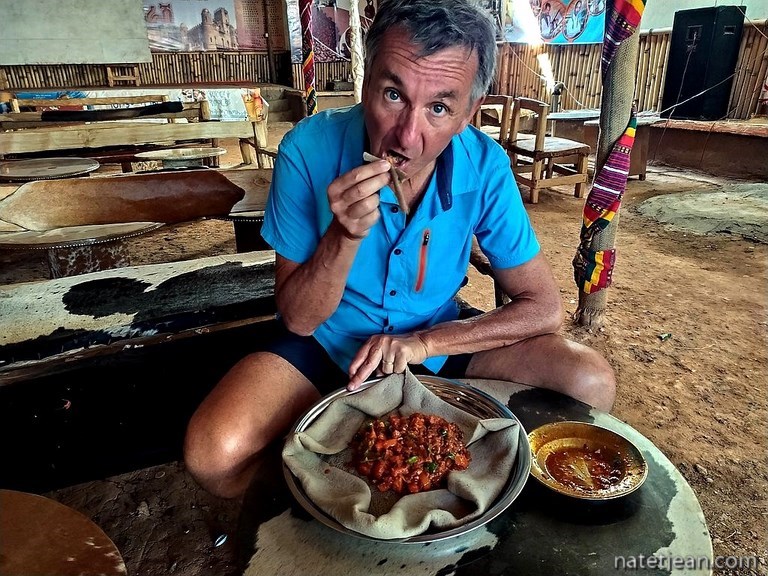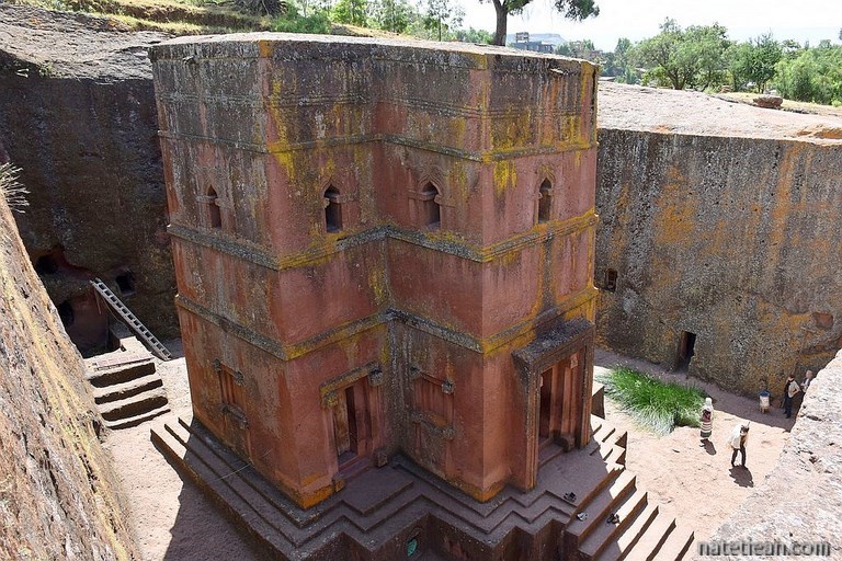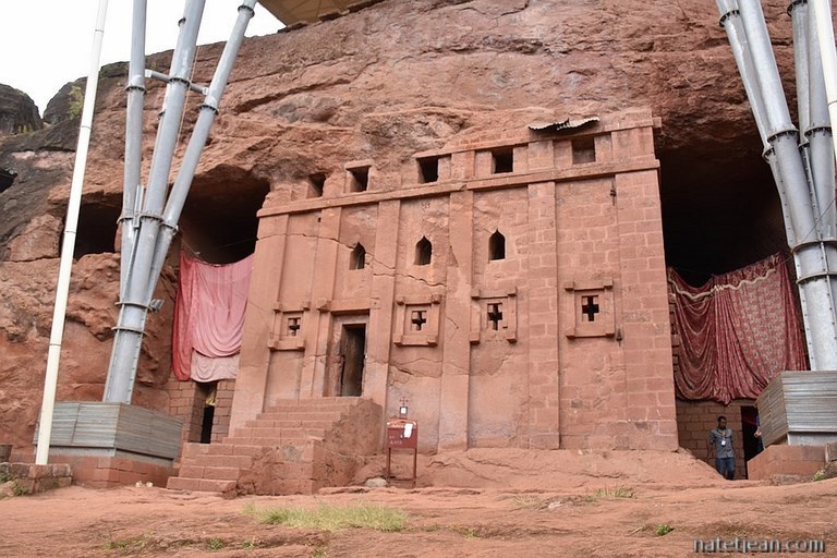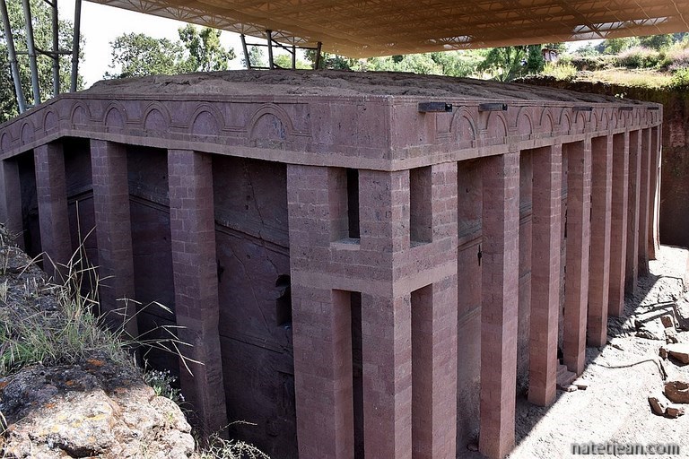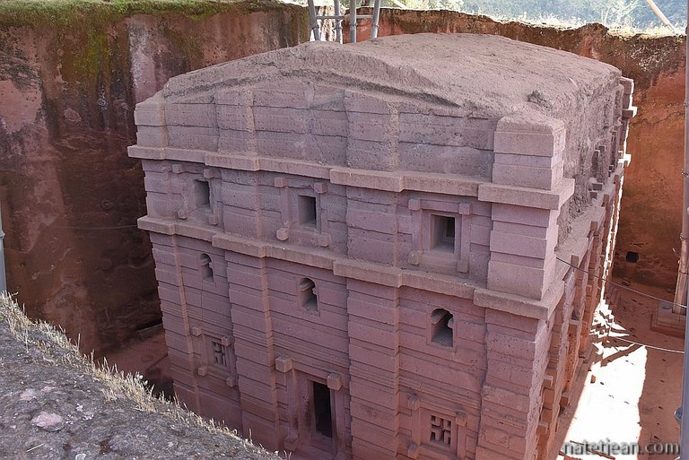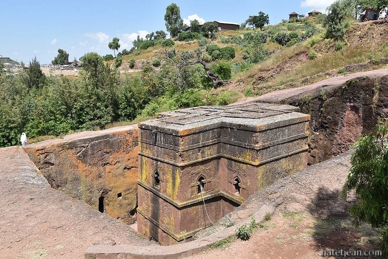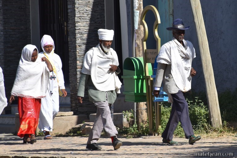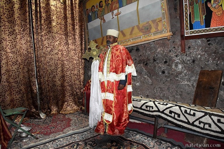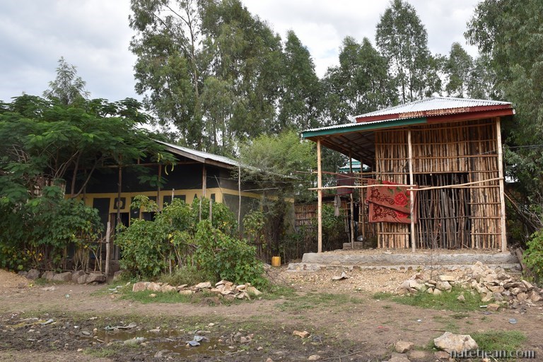 Le jour suivant, nous prenons la route pour Lalibela, la "nouvelle Jérusalem" où sont édifiés des sanctuaires chrétiens datant des XIIème et XIIIème siècles. De Dessié à Weldiya, on continue de suivre la route 1 puis nous nous dirigeons vers l'ouest pendant une cinquantaine de kilomètres en suivant la "Route Chinoise", une route asphaltée complétement défoncée. Arrivés au village de Dilb, à 3200 mètres d'altitude, on bifurque à droite pour prendre une piste sur environ 60 km. La piste, à fort dénivelé, nécessite un véhicule avec une bonne garde au sol afin de franchir les nombreux gués qui, au moment de notre passage, sont heureusement à sec. Il nous faut plus de 4h pour rejoindre Lalibela depuis Weldiya. Arrivés sur place, nous avons la chance de trouver, une fois n'est pas coutume, un joli lodge, le Tukul Village.