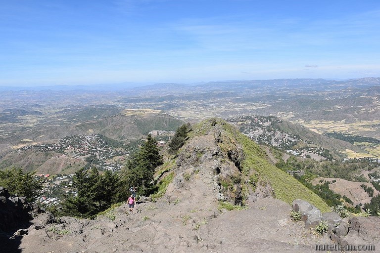 Nous partons randonner le troisième jour au-dessus de Lalibela en direction de l'église d'Asheten Mariam que nous ne visitons pas car le prix nous parait un peu excessif. De toute façon, ce que nous voulions, c'était surtout faire une balade dans ces magnifiques montagnes qui dominent la ville et nous ne le regrettons pas. Partis de Lalibela à 2400 mètres d'altitude, la montée est assez rude jusqu'au sommet à 3000 mètres et nous sommes contents de faire un peu d'exercice physique.