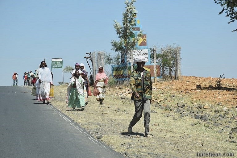 On arrive à Weldya pour la pause déjeuner. On roule ensuite tout l'après-midi avant de terminer la journée à Alamata, dans la cour du Meaza Hotel. On avait déjà fait connaissance avec les muezzins musulmans et leurs appels à la prière mais, cette nuit, à Alamata, c'est un infatigable chanteur de l'église orthodoxe voisine qui nous a tenus éveillés. Les 2 religions doivent s'envoyer des défis par "chanteurs" interposés ! Au lever du jour, on est contents de quitter la ville et de rejoindre enfin Mékélé.
