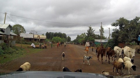 Au moment de quitter Lalibela, nous ne savons plus quelle route prendre. Pour rejoindre Mékélé, au nord, nous avons 3 solutions, soit reprendre la même route qu'à l'aller, soit choisir une autre piste passant par Geshena puis Weldiya, soit prendre la route la plus directe par Sekota au nord. On a beau se renseigner auprès de chauffeurs, aucun ne sait nous dire quelle est la meilleure option. Finalement, on se décide à reprendre la même route que pour venir. Elle n'est pas bonne mais au moins, on n'aura pas de surprises.