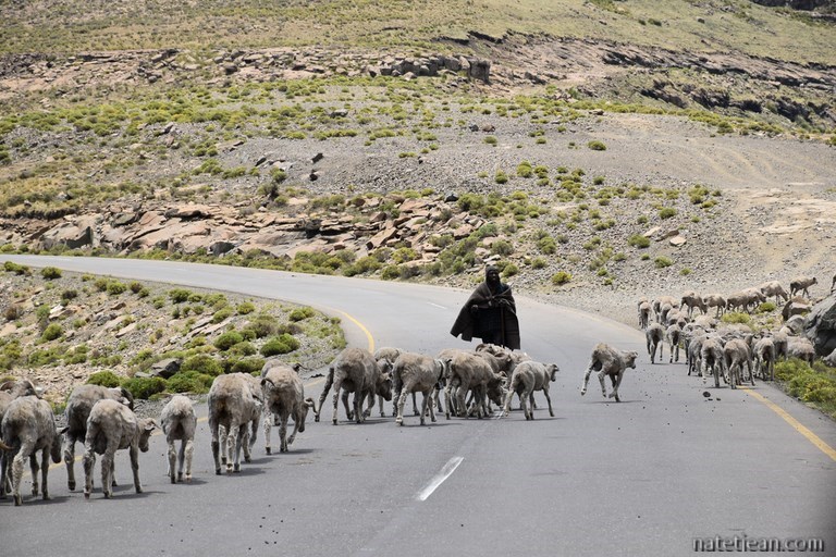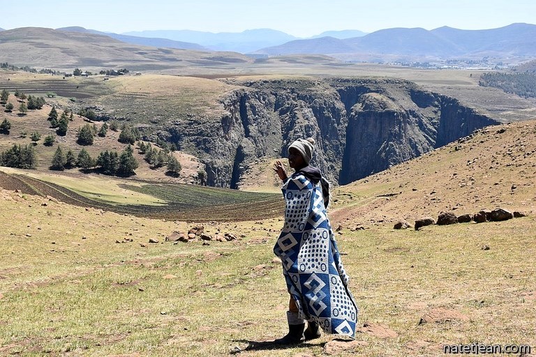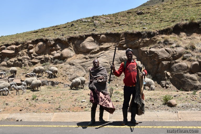 Hormis la traversée de la ville de Roma, nous ne croisons que des bergers et leurs maigres troupeaux de vaches ou de moutons sur une centaine de kilomètres. Certains bergers sont à cheval, la plupart sont à pied. Malgré la chaleur, tous sont couverts d'une épaisse couverture, attirail vestimentaire très répandu au Lesotho.