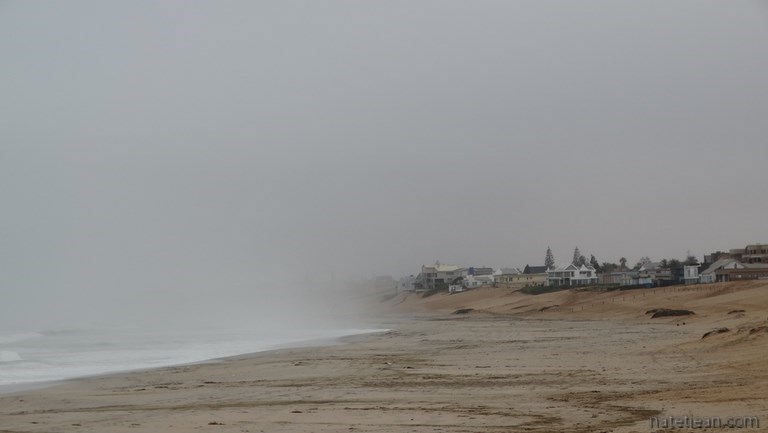 Le lendemain est une journée de transition (courses, laverie à Swakopmund, plein d'essence) avant de remonter la côte qui mène à Henties Bay, une station balnéaire toute neuve qui, en cette saison est déserte.