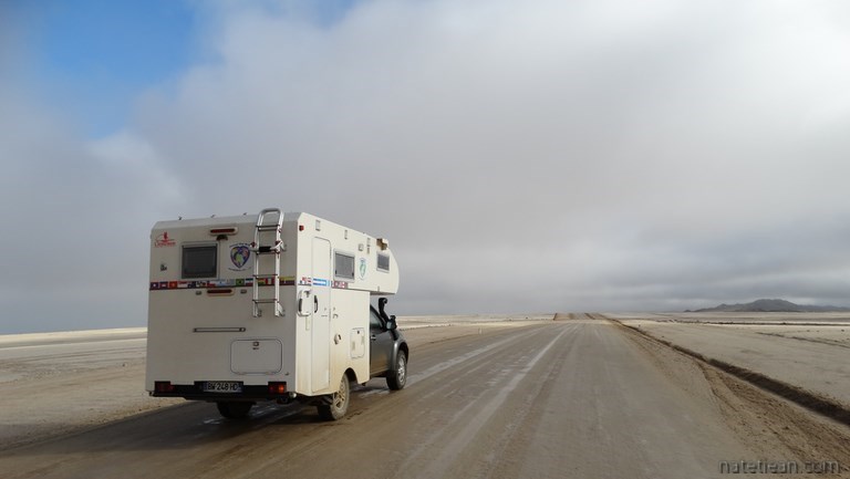 On apprécie de voyager seuls et de se retrouver dans des endroits aussi magnifiques rien que pour nous mais, ce qui est flippant sur cette route c'est que justement on est seuls; nous n'avons croisé personne sur notre chemin. S'il arrive quelque chose, nous risquons d'attendre longtemps les secours.