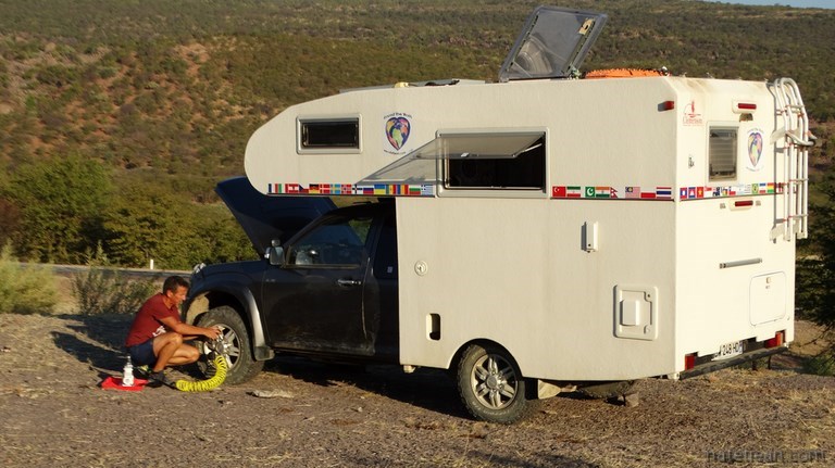 Notre expérience du 4X4 se résume à quelques kilomètres sur les chemins caillouteux du parc du Verdon, en Provence. Ces essais nous ont confirmé les excellentes qualités du véhicule tant au niveau de la motricité qu'au niveau des franchissements. De ce point de vue, nous avons donc peu d'inquiétudes; il suffit de se faire un peu la main sur les différents terrains (sable, cailloux, gués...) et de suivre les quelques conseils que nous avons reçus d'autres voyageurs, plus experts que nous dans ce domaine.