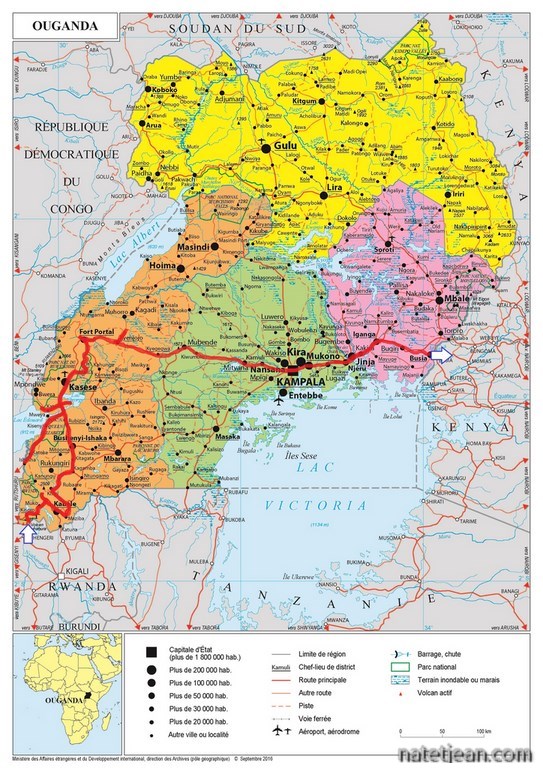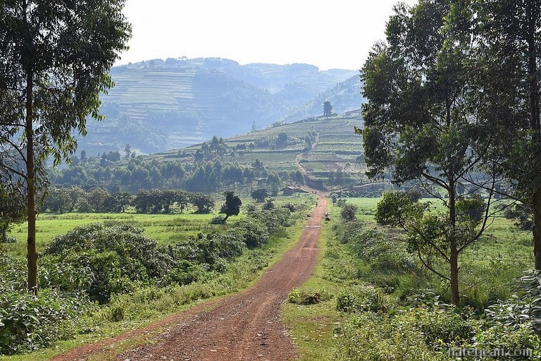 Après Fort Portal, nous avions prévu de monter plus au nord jusqu'au lac Albert sans grande motivation cependant. En principe, si l'on prend cette direction, c'est pour rejoindre ensuite le parc national de Murchinson Falls or nous n'avons aucune envie de refaire un safari dans ce parc. Au réveil, on retrouve un peu d'intérêt pour cette destination et l'on se met en route pour Hoima puis le lac Albert. Pendant 50 km, jusqu'au village de Kyenjojo, on suit une belle route qui traverse les plantations de thé et quelques forêt comme celle de Masindi puis à partir de là, on s'engage sur une piste. La piste est mauvaise et jusqu'au lac, il y a 170 km. Au bout de 10 km, on décide de faire demi-tour ; on n'a pas envie de se faire chahuter toute la journée pour rien. On reprend alors la route en direction de Kampala, la capitale, en comptant s'arrêter bien avant afin de faire la route en 2 étapes.