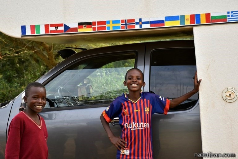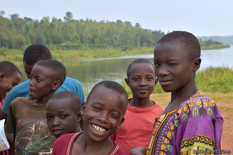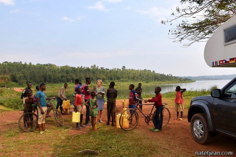 Même les bivouacs ne semblent pas trop compliqués à trouver; nous passons notre première nuit au bord du lac Muhazi en pleine nature. Nous devons cependant gérer les curieux qui ne cessent d'arriver. Initialement installés près d'un endroit où les villageois viennent chercher de l'eau, nous trouvons plus tard un endroit calme où personne ne vient nous importuner. Ce petit bain de foule avec les enfants nous aura permis d'apprendre quelques mots de kinyarwanda parce que, en pleine campagne, personne ne parle plus français.