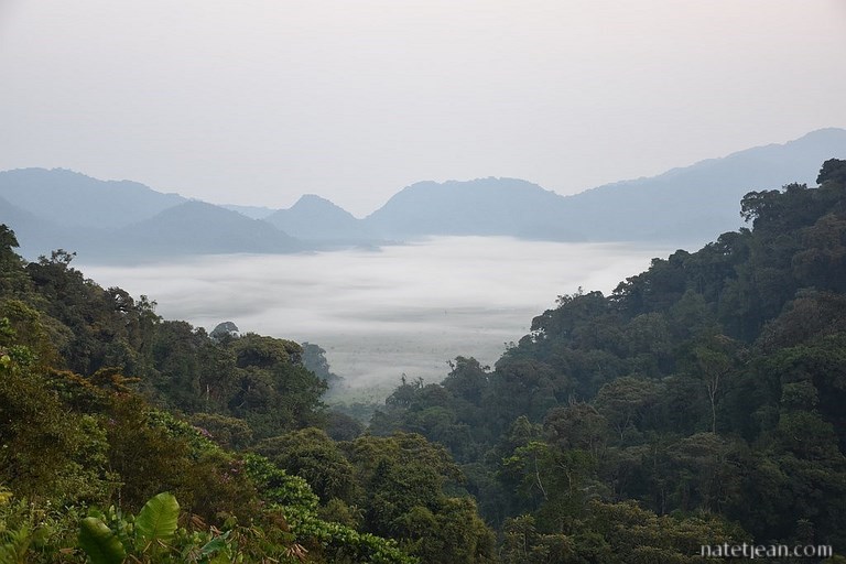 Notre emplacement étant proche de l'endroit où nous avons vu les chimpanzés, nous y retournons tôt le lendemain matin en espérant les apercevoir de nouveau mais, malheureusement, les chimpanzés ne réapparaissent pas.