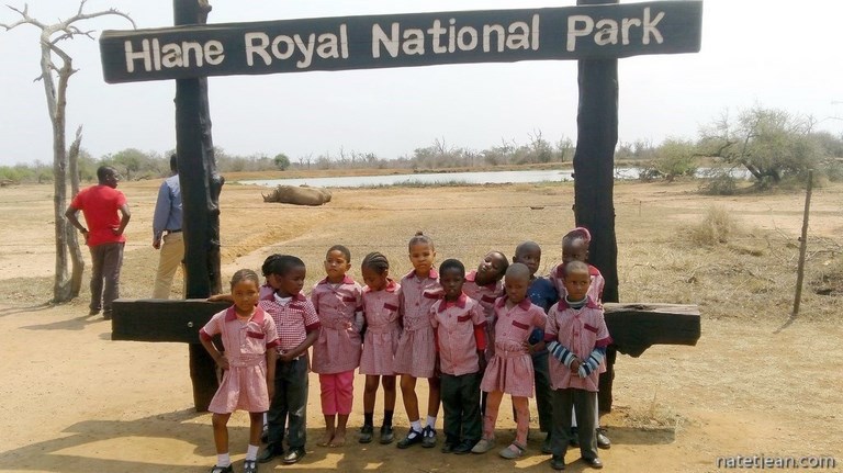 Hlane national park est un petit parc en comparaison de ceux que nous avons explorés dans d'autres pays. Le camping où nous dormons, Ndlovu camp, est très sympa et dispose d'un plan d'eau où à peine descendus du camping-car, nous y apercevons plusieurs hippopotames et surtout, 2 rhinocéros blancs.
