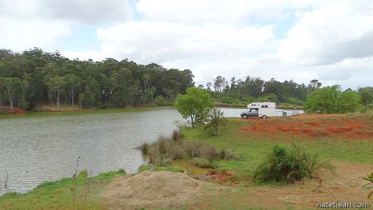 Si nous sommes un peu pressés d'arriver en Afrique du Sud, c'est qu'un nouvel appareil photos, envoyé par DHL, nous y attend. Il restera bloqué en douane à Johannesburg tant que nous ne serons pas entrés dans le pays. On a donc très envie de passer la frontière. Néanmoins, nous faisons encore un détour par les montagnes du nord-ouest du pays où nous prévoyons de passer la nuit avant de passer la frontière. C'est une belle région, en altitude, avec de grandes plantations de pins et d'eucalyptus.