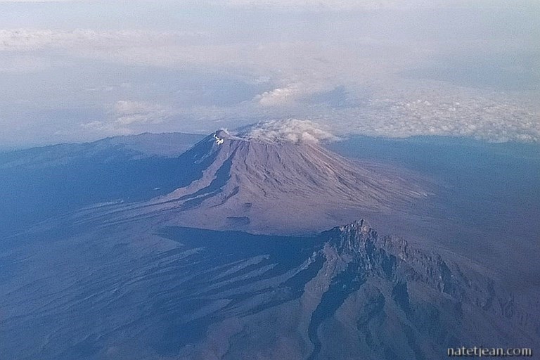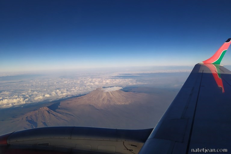 Après 3 semaines passées en France, nous reprenons un avion pour rentrer à Dar Es Salaam. Le vol passant par Nairobi nous permet de survoler le Kilimandjaro, le plus haut sommet d'Afrique (5895 m).