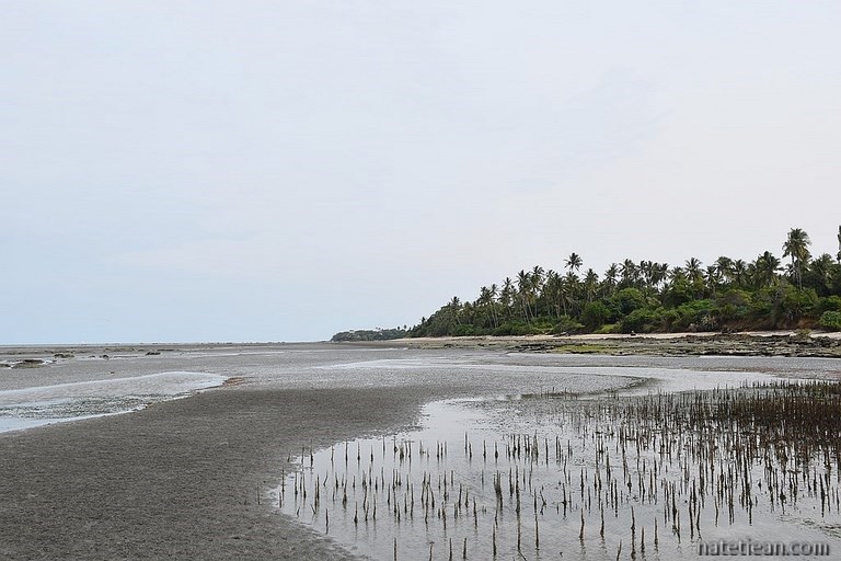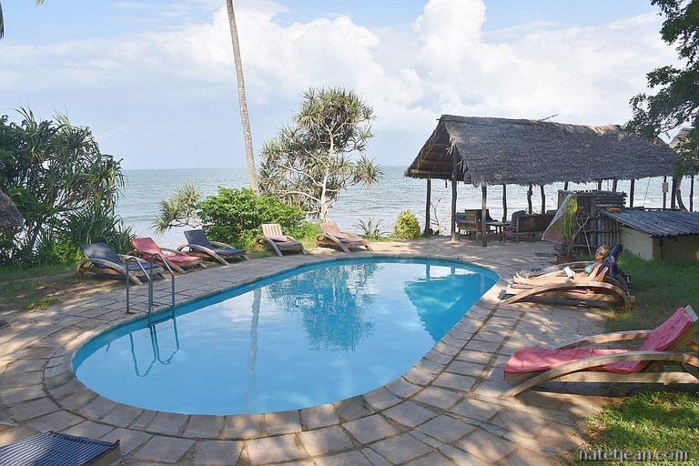 Le Peponi Resort est un joli complexe ; nous y bénéficions d'un emplacement au bord de l'eau. Kigombe est un endroit propice au snorkeling (elle fait partie du parc maritime de Coelacanth et au large, entourant une petite île de sable, se trouve la réserve marine de Maziwe) mais la mer est actuellement trop brassée pour en profiter. Donc pas de palmes-masque-tuba mais heureusement, la baignade est très agréable dans une eau à plus de 30°C.