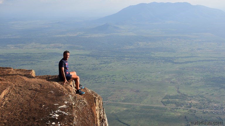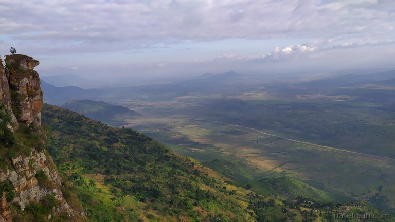 Arrivés à Mombo, nous montons jusqu'à Lushoto en passant par le village de Soni. La route, asphaltée jusqu'à Lushoto, nous emmène à plus de 1400 m d'altitude au milieu de forêts clairsemées et de petits villages. Arrivés à Lushoto, la route se transforme en piste, une bonne piste, pendant 4 km jusqu'au point de vue d'Irente. C'est là que nous nous arrêtons pour la nuit, sur le parking de l'Irente Cliff View Lodge. Dans l'après-midi, nous parcourons à pied les sentiers menant aux divers belvédères donnant sur la vallée et les barres rocheuses qui constituent le massif.