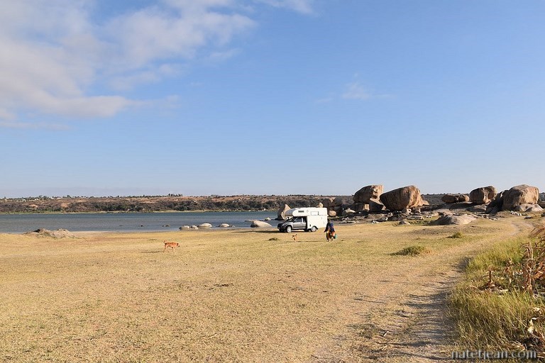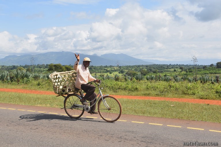 900 km nous séparent maintenant de la frontière rwandaise. Nous faisons la route en 5 jours en suivant la T3, nous arrêtant quelquefois en pleine nature comme au bord du lac de Singida ou à côté d'un point d'eau à Nzega et d'autres fois dans un petit hôtel dans des villes en bord de route comme à Nyakanazi et à Kasulo. Le premier jour, la route est très belle. C'est une route de montagne oscillant entre 1600 et 1800 mètres d'altitude sans aucune circulation. Après Singida, les camions arrivant de Dar Es Salaam et se dirigeant vers la ville de Mwanza et les frontières rwandaise, ougandaise ou burundaise sont nombreux et c'est un peu plus pénible de rouler. Après Nyakanasi et jusqu'à la frontière, la route devient terrible, comme si elle avait été bombardée. Décidemment, la Tanzanie ne favorise pas le passage à ses frontières ; déjà au sud, vers Mtwara, la piste n'était déjà pas en bon état.