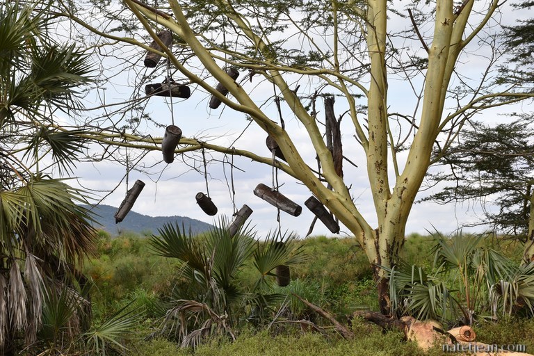 Ruches suspendues au bord de la rivière Ruvu - Kifaru