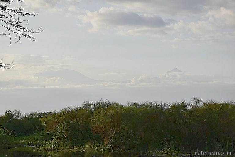Nous redescendons ensuite des montagnes pour poursuivre notre route vers Moshi et Arusha. Avant de rejoindre Moshi, nous faisons un arrêt près du village de Kifaru, au bord de la rivière Ruvu. Enfin un bivouac sauvage en Tanzanie ! Cela fait du bien de se retrouver en pleine nature avec en prime la vue sur le sommet du Kilimandjaro en fin d'après-midi lorsque les nuages se dissipent. Seuls bruits durant cette nuit isolée, le gazouillement des oiseaux et le grognement des hippopotames.