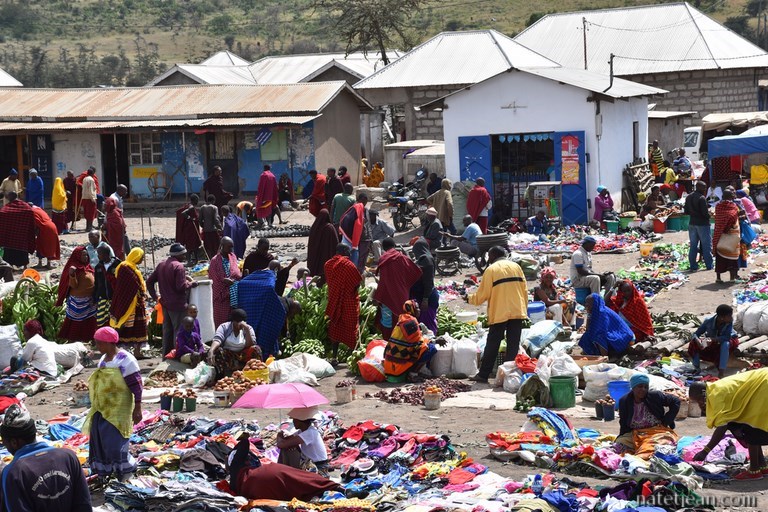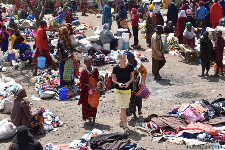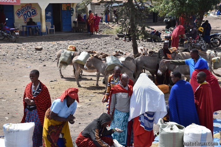 Le lendemain, ayant fait remplir nos 2 bouteilles, nous partons vers le parc national Tarangire que nous voulons visiter le lendemain. En route, nous nous arrêtons sur un marché où les habitants des villages alentour, des Massaïs, viennent acheter ou vendre du grain, des objets usuels et du bétail. C'est l'occasion de rencontrer ce peuple emblématique de la Tanzanie dans une atmosphère authentique.