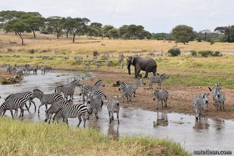 Eléphants et zèbres - Parc national Tarangire