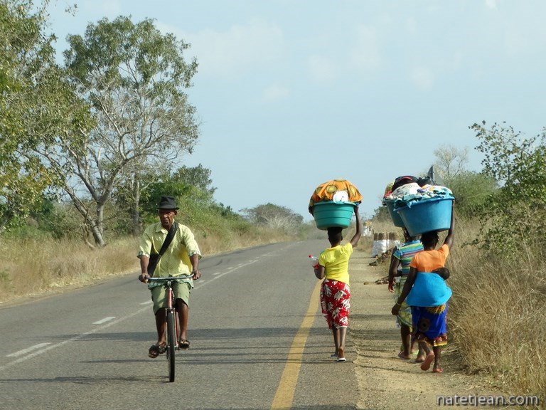 Une route principale, la N1, traverse le pays du sud au nord. Depuis la frontière zimbabwéenne, nous devons suivre la route N6 pendant 150 km pour la rejoindre. Cette dernière est flambant neuve et cela nous permet d'avancer rapidement. Nous avons prévu d'atteindre le bord de mer, à Inhassoro, en 2 jours. Il y a environ 500 km à parcourir et si la route est aussi bonne, cela devrait être plus rapide que prévu même si nous perdons un peu de temps en route, à Chimoio, pour faire quelques courses, retirer de l'argent et acheter une carte sim et si la nuit nous impose de nous arrêter dans un village, Muxungue.