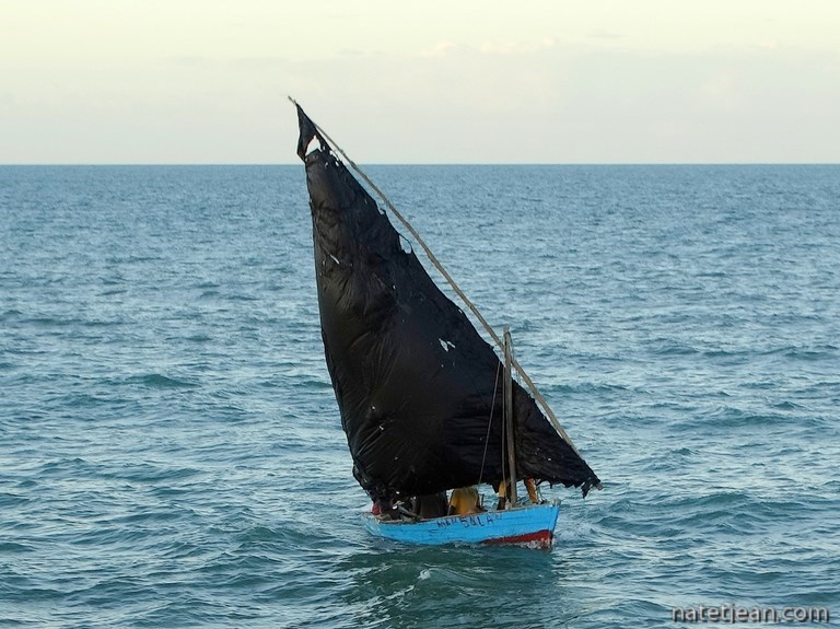 A 6h00, nous embarquons avec Peter et Verne sur un bateau à moteur. Le skipper navigue à vive allure pendant 25 km puis s'arrête au milieu de l'océan. Peter prépare alors les cannes à pêche et nous attendons que le poisson morde mais, rien... Ce n'est pas le bon endroit; l'eau y est un peu trouble. Nous repartons pour 10 km. Peter réinstalle le matériel. Quelques minutes plus tard, il m'appelle; ça mord déjà, du gros. Il me met la canne entre les mains et à moi de remonter le poisson. Dur, dur, quand on ne connait pas la technique. Lorsque le poisson arrive en surface, Peter reprend la canne en main car je n'en peux plus. Ça s'appelle aussi pêche sportive et ce n'est pas pour rien ! Peter remonte un thon de 8 kg. C'est ensuite au tour de Jean de pêcher un magnifique barracuda de 12 kg. Puis on alterne, pêchant chacun un autre barracuda. En tout, nous parvenons à prendre, à nous 4, 7 barracudas et 1 thon. Une pêche très chanceuse pour une première et une belle expérience.