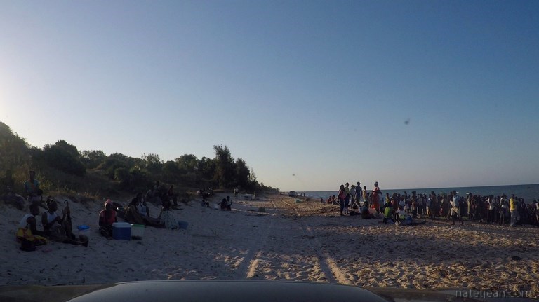 Pendant une vingtaine de kilomètres, nous roulons seuls sur la plage immense avant de retrouver les pêcheurs aux abords d'Inhassoro.