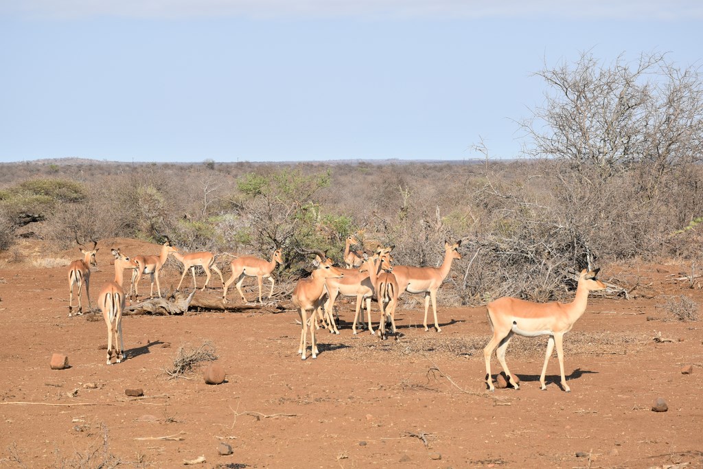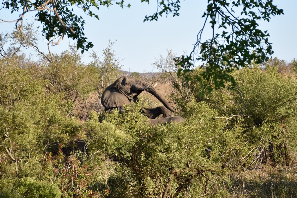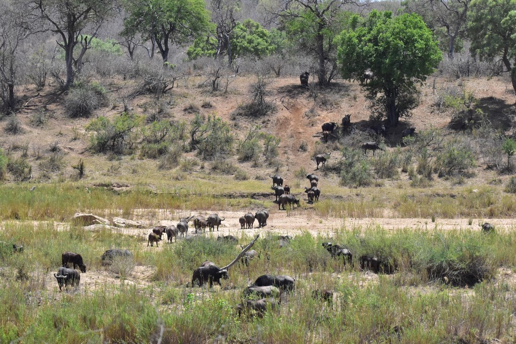 Nous avons été très gâtés par Kruger où nous avons vu la plupart des animaux emblématiques du parc dont les "Big Fives" (les 5 grands ou les 5 plus dangereux), le lion, l'éléphant, le rhinocéros noir et blanc, le léopard et le buffle. Nous y avons passé beaucoup de temps mais cela en valait la peine. Chaque jour, les situations dans lesquelles nous apercevions les animaux étaient différentes. Les animaux peuvent dormir, manger, se baigner, être en chasse ou être en rut. Ils sont seuls ou en groupe. Un jour, 2 ou 3 éléphants traversent devant votre véhicule tandis qu'un autre jour, ce sont des centaines qui franchissent la rivière Sabie. Chaque jour est différent et si, un jour, on a l'impression de ne pas voir grand-chose, on se réjouit le lendemain d'en voir autant.