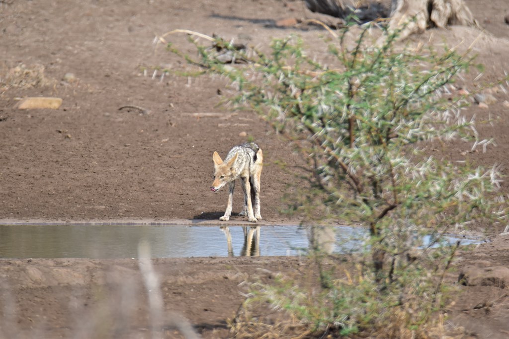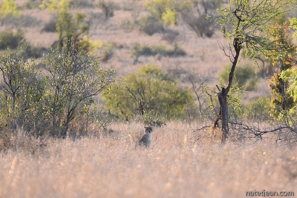 Nous voyons beaucoup de lions durant ces 13 journées passées dans le parc; 67 en tout. Souvent par groupes de 2 ou 3; on en croise jusqu'à 20 en une seule journée. Les léopards et les guépards sont un peu plus rares mais nous avons la chance de voir 6 léopards et 1 guépard; ce qui est déjà beaucoup. Les fauves sont assez difficiles à trouver en général. Les voir par soit même est très compliqué quand on n'est pas expert. Il est impératif de se renseigner dans les camps; il existe des panneaux avec des cartes du parc où sont pointés les animaux vus la veille et le jour même. Ils donnent une très bonne indication des endroits à explorer. Souvent aussi, ce sont les autres automobilistes ou les guides qui nous renseignent lorsque nous les croisons. La traque est collective. Nous pouvons voir autant d'animaux sur les routes que sur les pistes. Il n'y a pas vraiment de règle. Nous nous sommes cependant aperçus que la faune est plus nombreuse lorsqu'il fait très chaud.