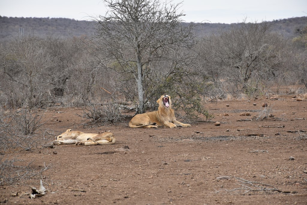 Nous entrons, ce premier jour, par la porte de Numbi et prenons la direction de Skukuza comme nous l'avions fait la semaine précédente puis nous descendons vers le sud. Aujourd'hui, les points d'eau sont désertés et la faune est bien moins abondante sur notre passage que le premier jour. Nous avons tout de même la chance de croiser 2 autres lions. Nous quittons le parc pour passer la nuit dans un camping situé à quelques kilomètres de l'entrée de Malelane, au sud-ouest du parc.