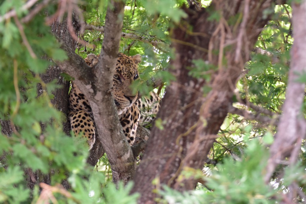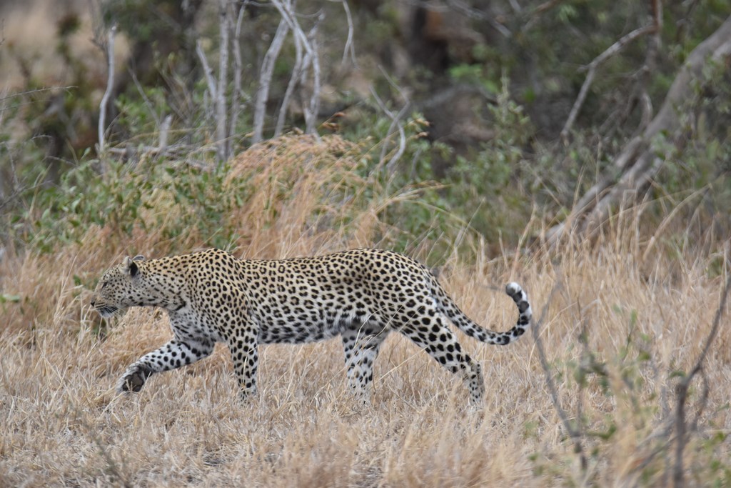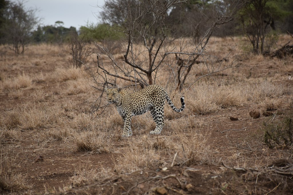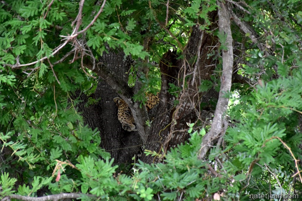 En 13 jours, nous parcourons 1'700 km ! Nous passons beaucoup de temps dans le véhicule car les kilomètres dans le parc se parcourent à 20 km/h de moyenne. Il nous arrive de partir à 5h30 le matin, surtout durant les journées les plus chaudes mais, ce n'est pas forcément tôt le matin que l'on aperçoit le plus d'animaux. D'autant que plus tard dans la matinée, ceux-ci ont déjà été signalés par d'autres personnes et il est plus facile pour nous de les voir. Si plusieurs voitures sont garées au même endroit en bord de route, c'est l'assurance d'apercevoir un fauve. Encore faut-il être au bon endroit au bon moment car les lions et surtout les léopards ne nous attendent pas toujours.