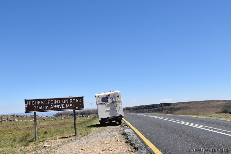 Dans la matinée du lendemain, nous retournons à Nelspruit réceptionner notre nouvel appareil photos puis nous partons en direction du Drakensberg Escarpment et du Blyde River Canyon, le 3ème plus grand canyon du monde. Après avoir emprunté une belle route de montagne, nous faisons halte à Sabie pour la nuit. C'est encore une fois une nuit passée en camping et c'est un crève-cœur car partout, nous aurions pu bivouaquer dans de magnifiques endroits. Sauf qu'en Afrique du Sud, on nous a mis en garde, pour notre sécurité, pas de camping sauvage. Ici, on devient complètement paranos. Les campings sont entourés de 3 rangés de barbelés électrifiés et lorsque nous garons notre camping-car quelque part, nous le faisons garder... Tout ceci nous met un peu sous tension. Est-ce exagéré ? L'avenir nous le dira. En attendant, nous ne ressentons aucun mauvais sentiment de la part de la population, bien au contraire, Blancs et Noirs sont tout autant accueillants et amicaux.