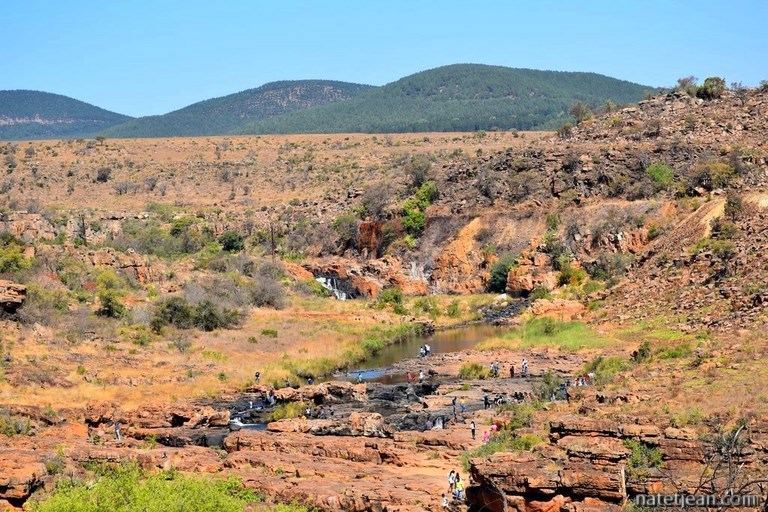 Nous campons le soir à Graskop, endroit agréable et touristique avec une très belle vue sur le Drakensberg Escarpment. A partir de Graskop débute ensuite une belle route panoramique parsemée de points de vue plus ou moins intéressants. Nous retiendrons les Berlin Falls ainsi que la vue sur la rivière Blyde et son barrage depuis The Three Rondavels tandis que Pinnacle, Wonder View, God's Window et Bourke's Luck Potholes ne valent pas le détour. Ce qui était amusant tout de même sur ces sites c'est qu'il y avait un monde fou, des citadins en week-end, et que l'ambiance y était vraiment festive. Finalement, on a d'avantage observé les Sud-Africains en balade que les paysages.