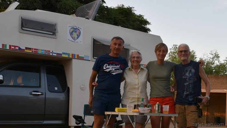 Ces rencontres nous permettent de passer des moments en bonne compagnie. Nous n’oublierons pas la gentillesse d’Aline et Georges ni celle de Roelf et de sa femme Chris Mary chez qui nous avons déusté un délicieux braai d’oryx flambé au Brandy. Un délice ! Roelf est un spécialiste du « game » (gibier) dans un autre domaine que le BBQ ; il a un business (outre la fabrication des lames de suspension) qui consiste à capturer vivant du gibier pour le déplacer d’une réserve vers une autre à la demande de ses clients. Nos visionnons ensemble une vidéo sur une de ses captures de girafe, c’est chaud !
