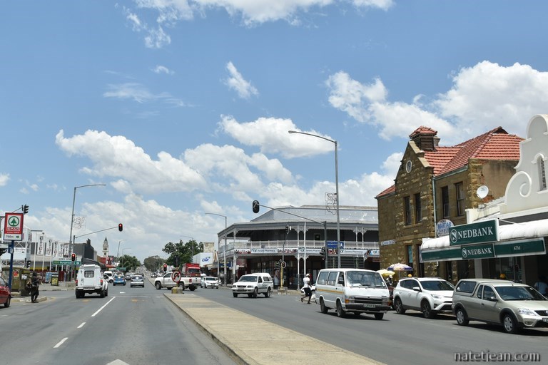 Entre les rencontres et les allers-retours dans les différents garages, nous passons 5 jours à Bloemfontein. La ville, capitale d’une région agricole, n’a pas grand intérêt touristique. Les seules personnes qui s’y arrêtent sont celles qui viennent y faire des missions pour leur travail ou les vacanciers en transit entre 2 destinations, entre la côte et Johannesburg. Ce qui nous surprend, c’est que le centre-ville soit si sale. Les sacs poubelles, éventrés par les mendiants à la recherche d’objets ou de nourriture, sont dispersés sur les trottoirs. Cela ne donne pas très envie de s’y balader même si le centre historique mérite d’y faire un petit tour.