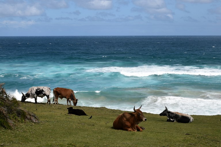 Après Mthatha, Coffee Bay n’est plus très loin. La route qui y mène est goudronnée mais de qualité moyenne sur les derniers 50 km; il y a de nombreux trous à éviter. La récompense est au bout de ce chemin. En dépassant Coffee Bay et ses auberges « backparker », on parvient à un petit resort, le White Clay, construit à flanc de rocher. C’est une des seules constructions en bord de mer. On aperçoit au loin quelques rondavels, les maisons rondes traditionnelles des paysans du Cap Oriental. L’endroit est balayé par les vents et la mer se fracasse contre les rochers en contrebas. La côte sauvage porte bien son nom.
